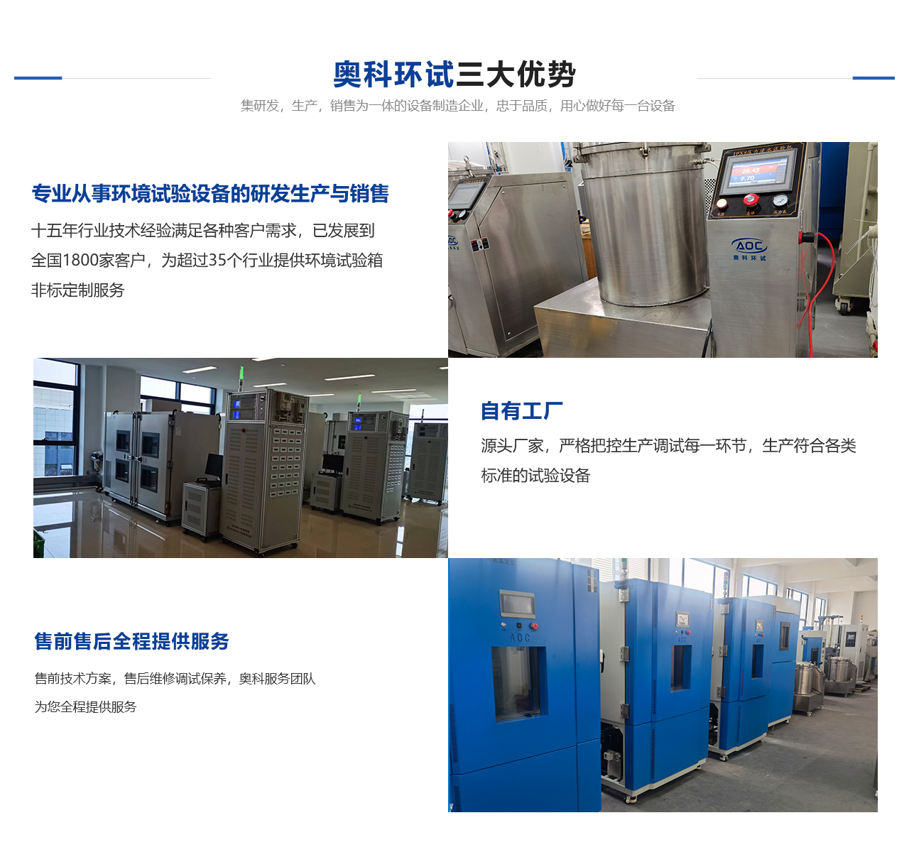 安徽奧科試驗(yàn)設(shè)備有限公司隸屬于杭州奧科環(huán)境試驗(yàn)設(shè)備有限公司直屬分公司,是一家從事各種試驗(yàn)設(shè)備研發(fā)、生產(chǎn)與銷售一體的技術(shù)單位。總公司擁有強(qiáng)大的技術(shù)團(tuán)隊及科學(xué)嚴(yán)謹(jǐn)?shù)纳a(chǎn)流程,鑄就了產(chǎn)品質(zhì)量。公司本著“以質(zhì)量求生存,以信譽(yù)求發(fā)展”的原則,為科研、軍事、航空、電子、汽車、石油、化工、醫(yī)療、通訊等各大院校和企事業(yè)單位提供符合GB、GJB、IEO、ISO、ASTM、MIL、DIN等標(biāo)準(zhǔn)的各類環(huán)境試驗(yàn)設(shè)備,并可根據(jù)用戶的需求設(shè)計制造各類非標(biāo)性設(shè)備。奧科奉行“進(jìn)取求實(shí)嚴(yán)謹(jǐn)團(tuán)結(jié)”的方針,不斷開拓創(chuàng)新,以技術(shù)為核心、視質(zhì)量為生命、奉用戶為上帝,竭誠為您提供高性價比的自控產(chǎn)品及無微不至的售后服務(wù)。